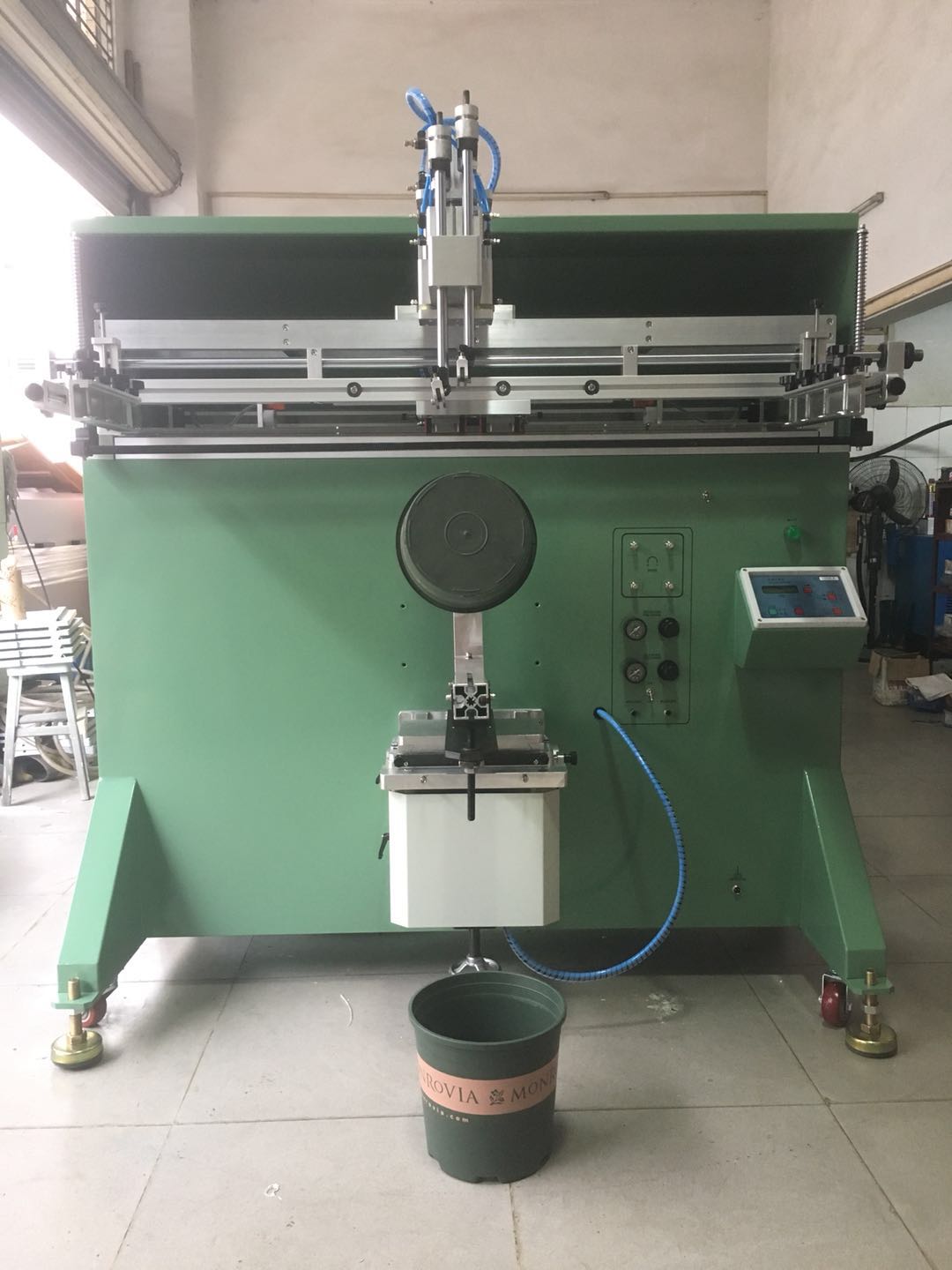 環球加侖塑料花盆網版印刷機械專業印刷塑膠、玻璃、陶瓷、木材、金屬等材質制成之的圓筒、橢圓、扁型產品的曲面絲網印刷。印刷產品例如:唇膏外殼、化妝品瓶子、洗滌劑瓶子、飲料瓶、杯子,濾清器、罐子、玩具等